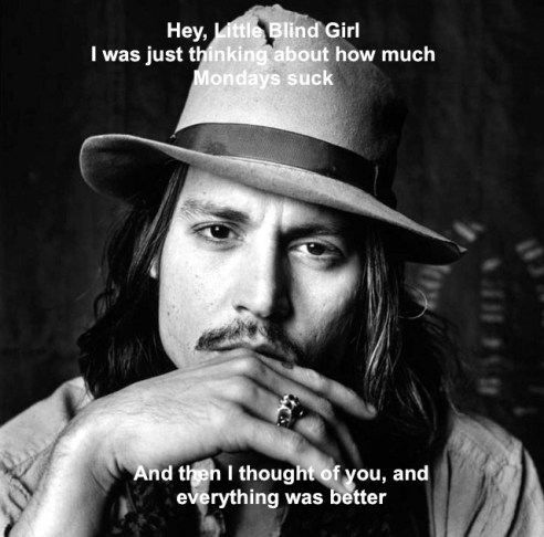 And are we talking about really good erotic poetry? I mean, Johnny Depp as Captain Jack Sparrow is the ultimate in visual sexy…but as a Little Blind Girl, I think I’m going to have to go with Benedict Cumberbatch reading erotic poetry. I never thought the day would come. Sorry, Johnny. It’s not you, it’s me. If anyone knows of any recordings of Benedict Cumberbatch reading erotic poetry, let me know. Please. Really, please.